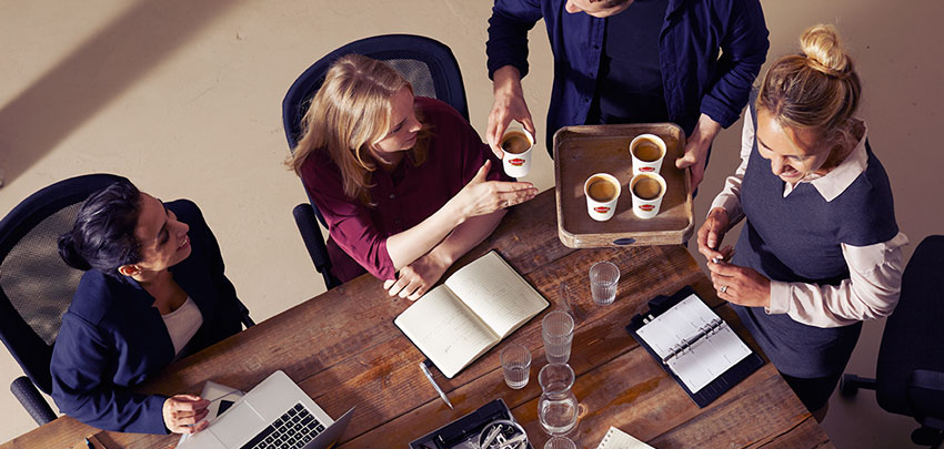 Binnen Jacobs Douwe Egberts Professional hebben we sinds enige tijd de Coffee Talk geïntroduceerd. De Coffee Talk is binnen Jacobs Douwe Egberts een bijeenkomst waarin medewerkers om de maand plenair worden bijgepraat over de ontwikkelingen binnen de organisatie en dagelijkse activiteiten van collega’s.